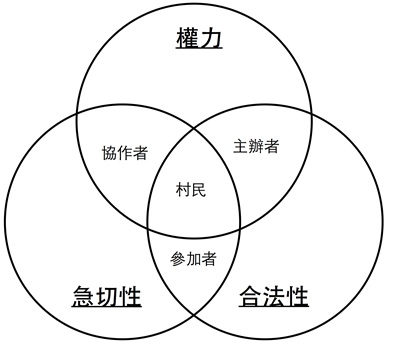 從Bowdin、Allen、O''toole、Harris和Mcdonnell (2006)的活動和文化管理理論角度,藝文節涉及不同持份者的利害關係(stakeholder relationship),可以從他們籌辦節慶的角色而構成的需求、權分類為主要組別: 1) 發起整個節並具有最高決策權,甚至是提供主要資金來源的主辦者 (host organization);2)活動舉行埸地的當地社群 (host community) 如: 村民、地方管理者、3) 參加者 (participants) 如從村外來參觀或參加活動的大眾和學生 和4) 執行整個節中各活動的協作者 (co-workers) 如藝術節策展人、為藝術節創作的藝術家和各活動的義工。創作人作為主要持分者之一,是藝術內容和活動的生產者,在創作上需要有高度的靈活性和自由度等外在條件;當地社群是決定活動否能在當地發生的重要持分者,因此社群會關心活動對當區的改變和影響。於是一個藝術活動能否在當地發生,其實需要不同涉持者的協商或同意。再者,持份者的利害關係不是純然因由需求和權力構成。按Mitchell 、 Agle 和Wood (1997)提出的持份者顯著性理論 (Stakeholder Salience,SS) ,持份者的利害關係是動態的。SS以三個屬性: 1) 持份者的權力(Power)、2) 持份者及其需求的合法性(Legitimacy)和3) 持份者的需求的急切性 (Urgency)作維度來描述持份者份的關係(Mitchell et al., 1997)。相比權力利益(Power / Interest)的持份者分析模組,SS突出了關乎時效性的急切性比權力和合法性同樣重要,同時Neville 、Bell 和 Whitwell (2011)指出在權力和合法性中,持份者的相鄰度(Proximity)會按不同條件改變。於是因需求的急切性隨時間變動,持份者的利害關係亦隨之變動。於是,在籌劃和執行藝術節的過程裡,需求的轉變 和 持份者的相鄰度會隨持份者的互動而改變。我嘗試以下面三個案例反映不同持份者對藝術節的不同期許如何影響他們的利害關係,並突出這些關係是互動並影響著藝術節裡活動的發展,把活動調節成更乎成多方持份者的需求和傾向地方營造這藝術節的目標。
